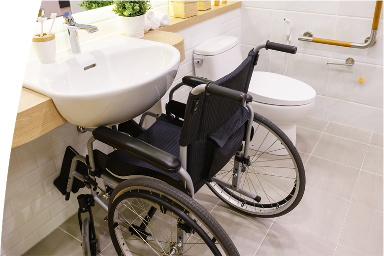 The disabled should ideally have their own washbasin adapted to the type of disability. Whether it is a wheelchair user or a person on crutches, one thing these washbasins have in common is that they must have enough space around them for comfortable use.