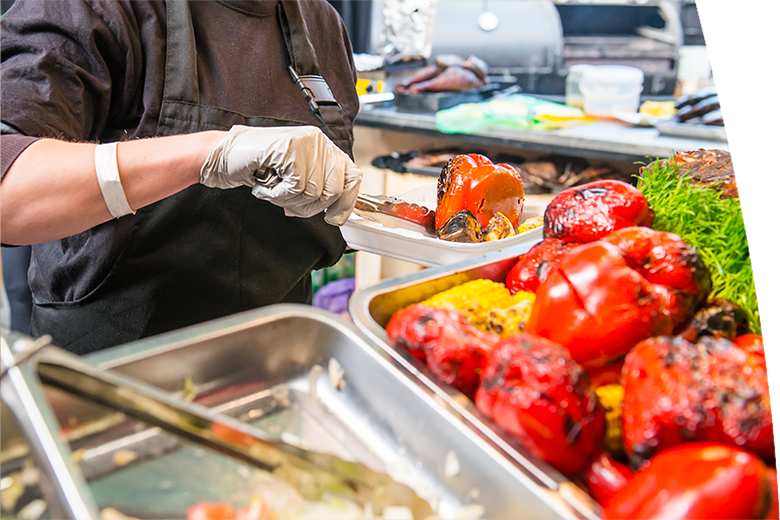 The staff working with food should use gloves and regularly disinfect their hands plus both food and beverages should have sealed packaging for better protection.