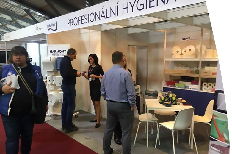 Participation of SHP Group in the fair took part in cooperation with strategic partner for the Czech Republic – the company KuKuPapír. The aim was to present the brand and products Harmony Professional, presentation of the strategic partner KuKuPapír CZ, additional presentation of products designated for retail and addressing of new customers – end costumers like small hotels/restaurants/coffee-houses, including hotels, as well as addressing of customers in the field of production plants for gastronomy.